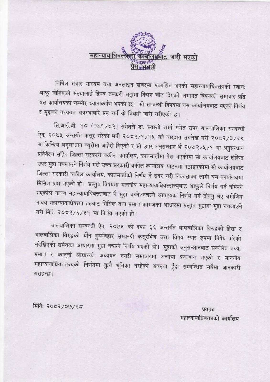 हेर्नुहोस् महान्यायाधिवक्ता कार्यालयको वक्तव्य-