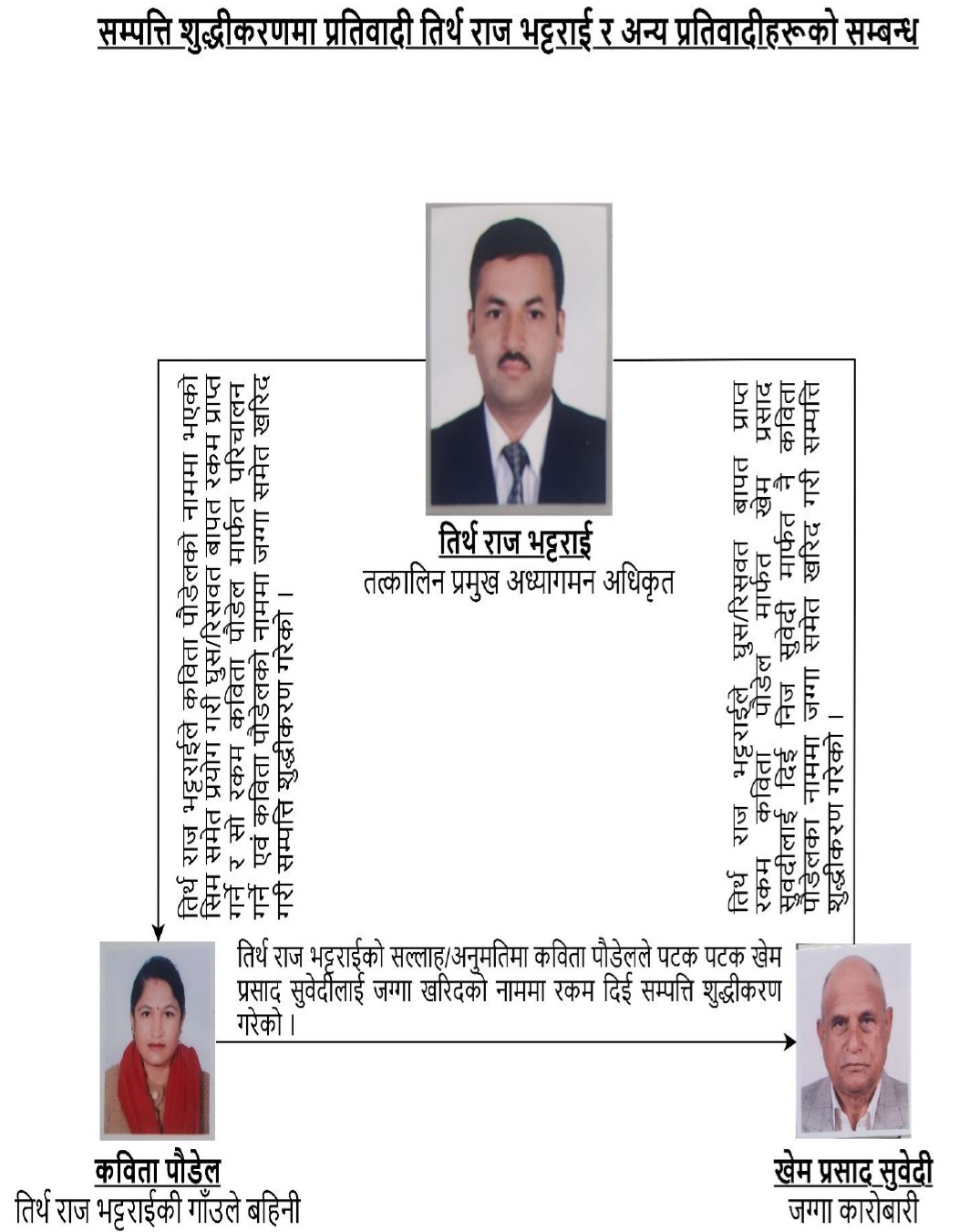 सोही आधारमा अख्तियारले तत्कालीन प्रमुख भट्टराईसहित कविता पौडेल र खेमप्रसाद सुवेदीलाई सम्पत्ति शुद्धीकरण निवारण ऐनअन्तर्गत पनि मुद्दा चलाएको छ ।