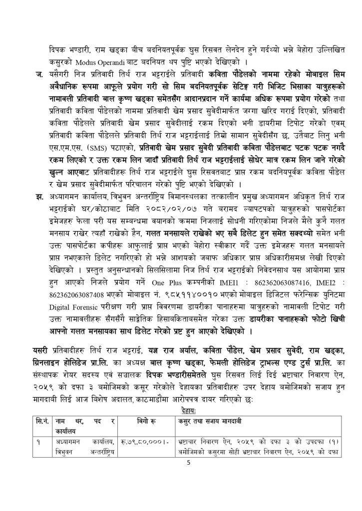 अभियोग लागेका तीर्थराज भट्टराई, कविता पौडेल लगायतका प्रतिवादीहरुलाई अहिले नै दोषी हुन् भनेर ठोकुवा गरिहाल्न सकिँदैन । यो सम्मानित अदालतमा विचाराधीन विषय हो ।