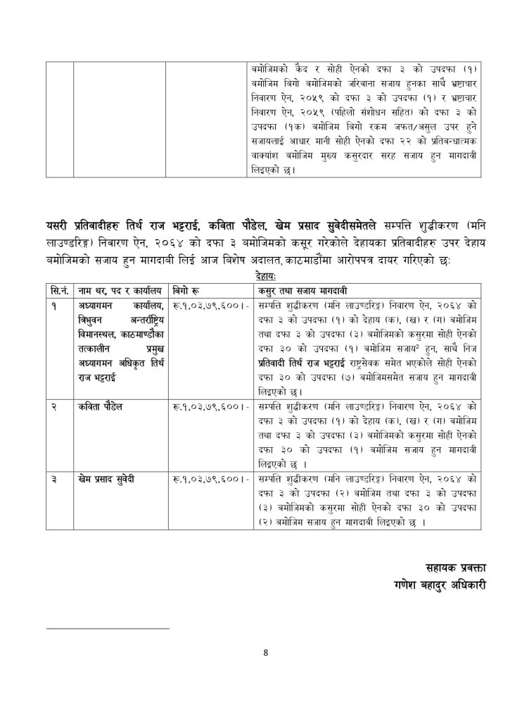 हेर्नुहोस् विशेष अदालतको आदेश र अख्तियार दुरुपयोग अनुसन्धान आयोगको अभियोगपत्र–