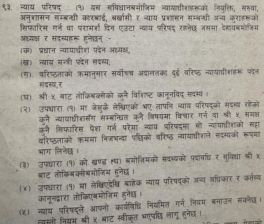 अब बहस गर्नुपर्ने बेला आएको छ । के हाम्रो संविधानको धारा १५३ ले गरेको न्यायपरिषद सम्बन्धी व्यवस्था ठीक छ त ?