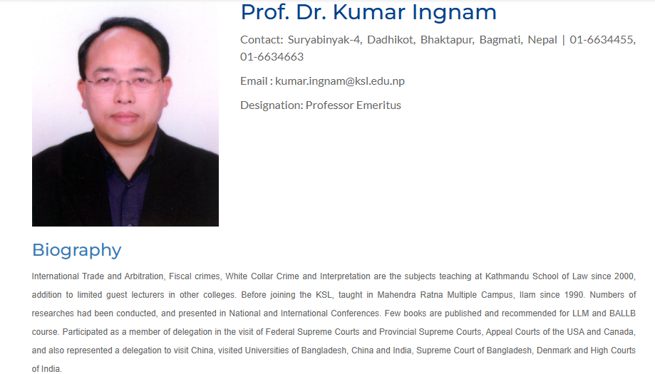 तपाईंले कानून विषयको प्राध्यापन गर्नुभएको कति वर्ष भयो ? कानूनमा प्राध्यापन गरेको त सन् १९९०/९२ तिरबाट होला । सुरुमा म इलाम क्याम्पसमा थिएँ । त्यहाँ पहिला आइएलमात्रै पढाइ हुन्थ्यो, बीएलको प्रोग्राम मैले नै सुरु गरेको हो । त्यहाँ म ०५२/०५३ सम्म बसेँ होला । त्यसपछाडि काठमाडौँ आएँ । ल क्याम्पसमा छोटो अवधि, एक वर्षजति अध्यापन गराएँ । सँगसँगै कानून व्यवसाय पनि गरेँ । सन् २००० बाट काठमाडौं स्कूल अफ ल (केएसएल) सुरु भएदेखि नै मैले केएसएलमा पढाएँ ।