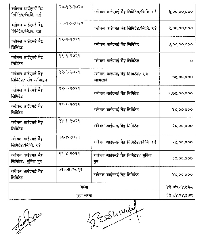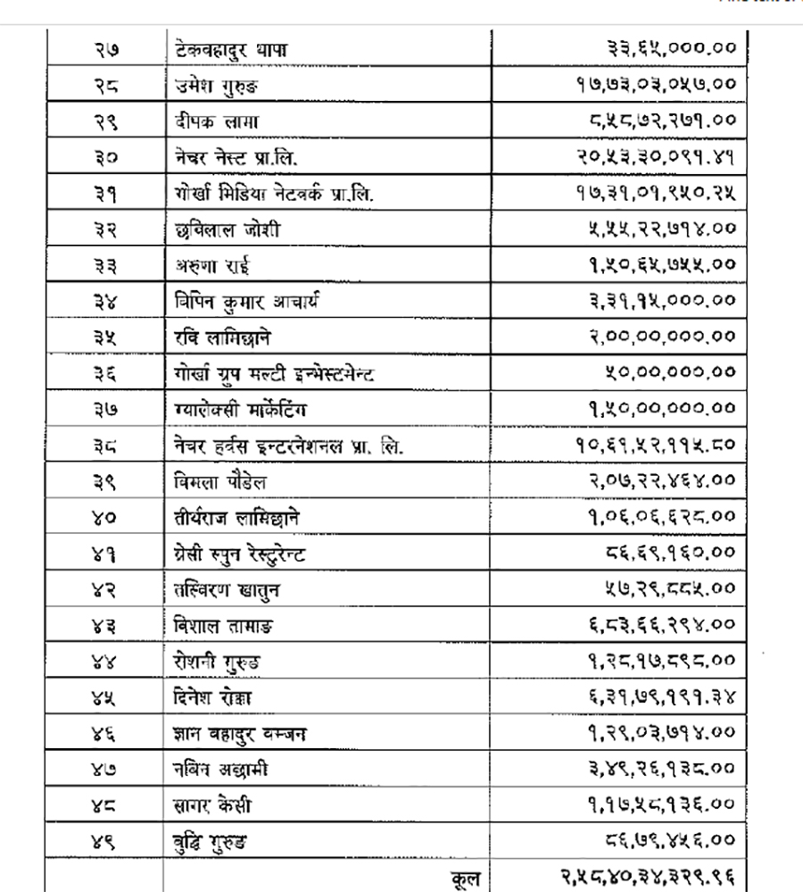 तथ्यांक स्रोत : स‌ंसदीय छानविन समितिको प्रतिवेदन