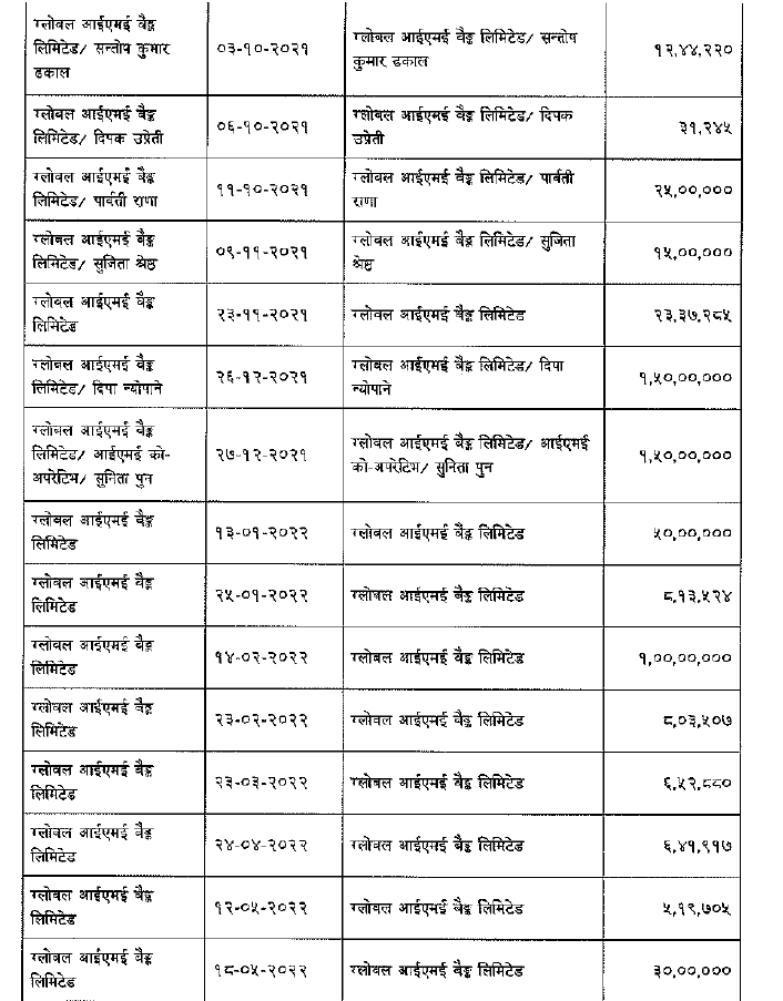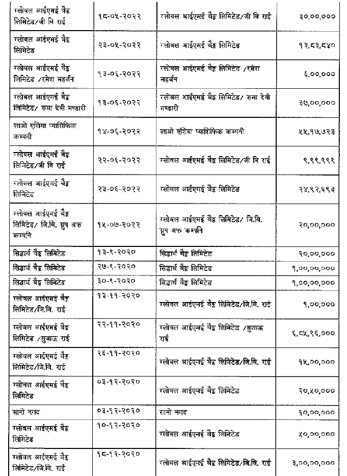 तथ्यांक स्रोत : स‌ंसदीय छानविन समितिको प्रतिवेदन