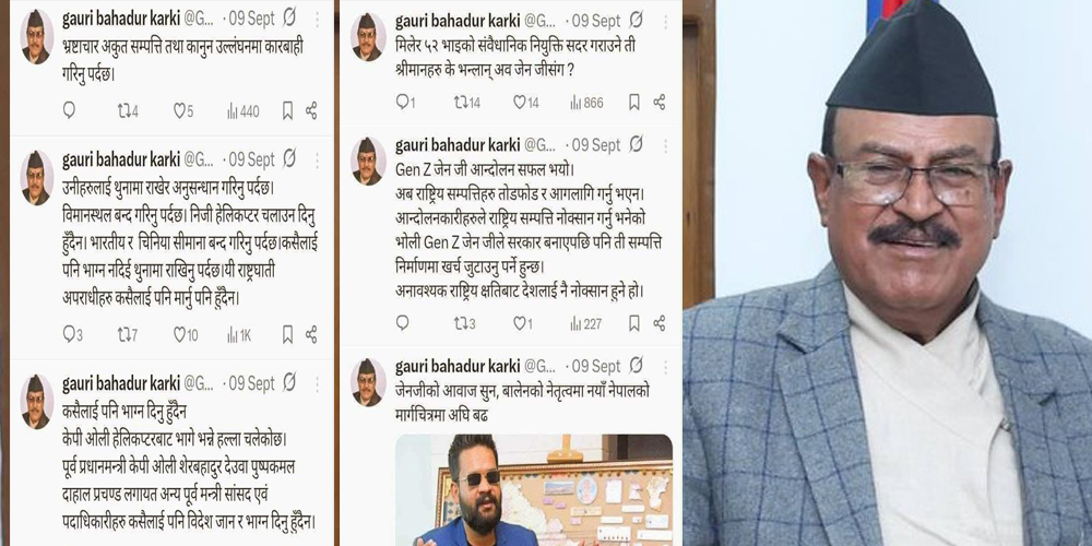 सर्वोच्च अदालतमा कार्कीविरुद्ध परेको रिटअनुसार भदौ २३/२४ को जेनजी आन्दोलनका बेला गौरीबहादुर कार्कीले सामाजिक सञ्जालमा यस्तो व्यहोरा लेखेका थिए–
