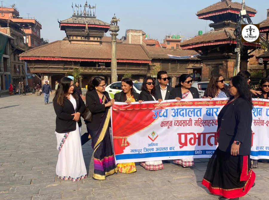 सम्मेलनको उदघाटनको दिन विभिन्न जिल्लाबाट काठमाडौं उपत्यकामा भेला भएका कानून व्यवसायीहरुले भक्तपुरमा प्रभातफेरी गरेका छन् ।