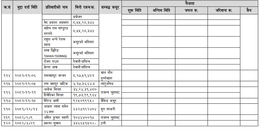 हेर्नुहोस् सम्पत्ति शुद्धीकरण विभाग गठन भएयताका मुद्दामाथिका कारबाहीको विवरण –