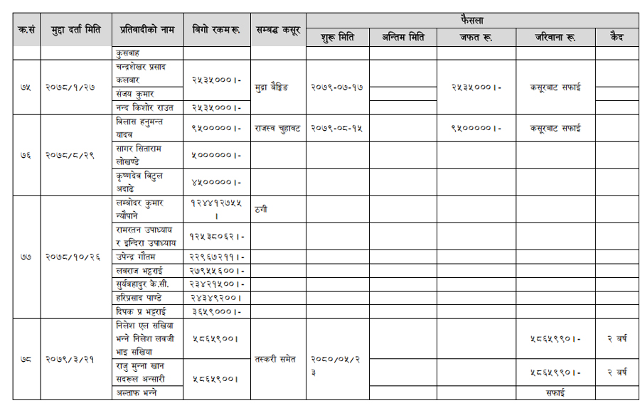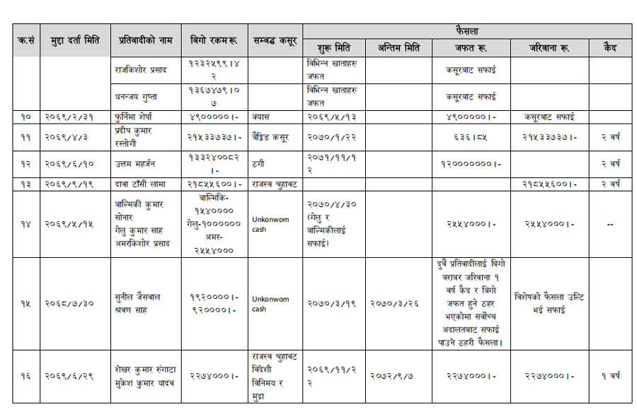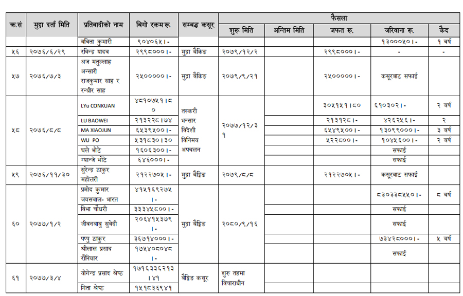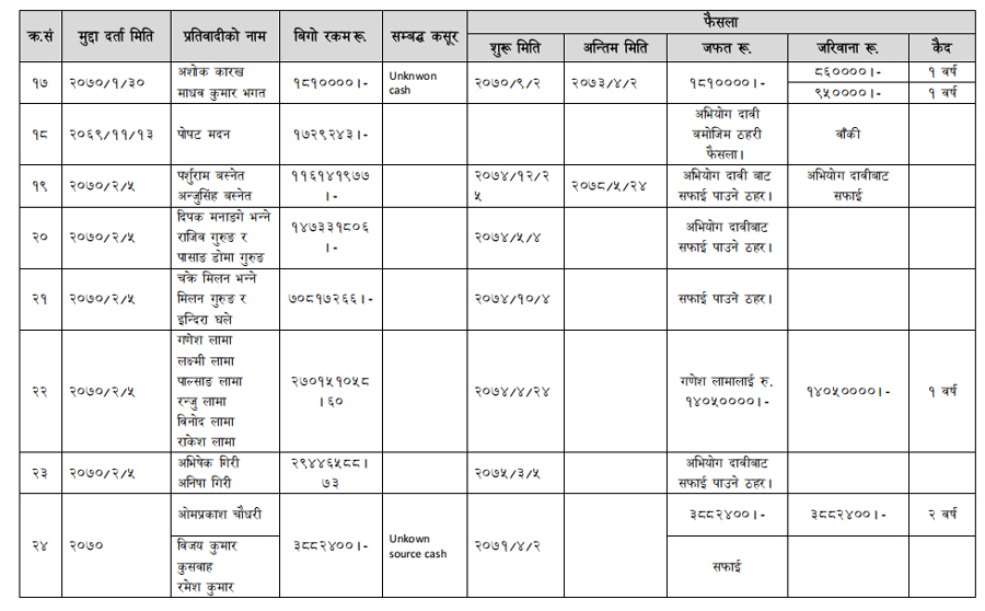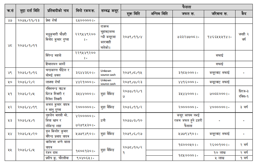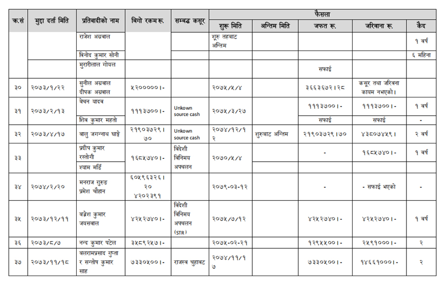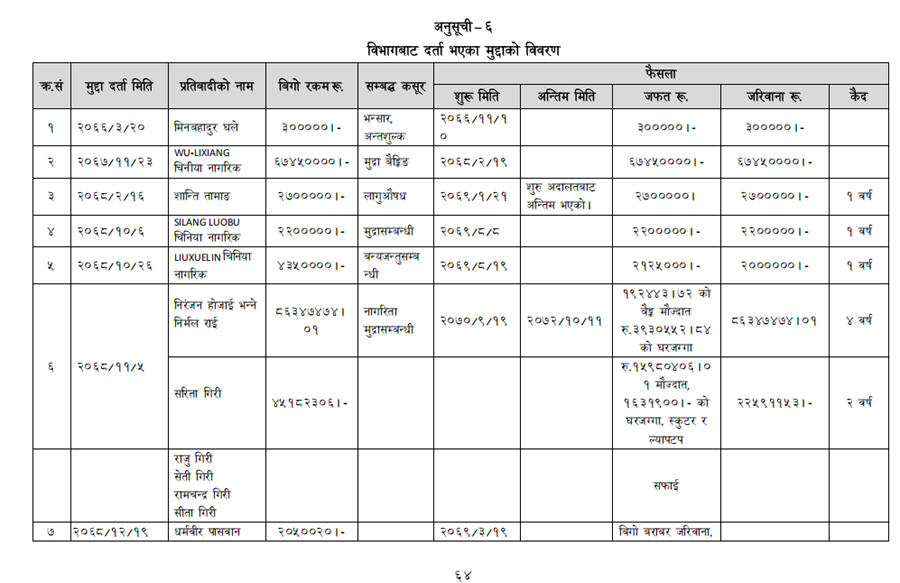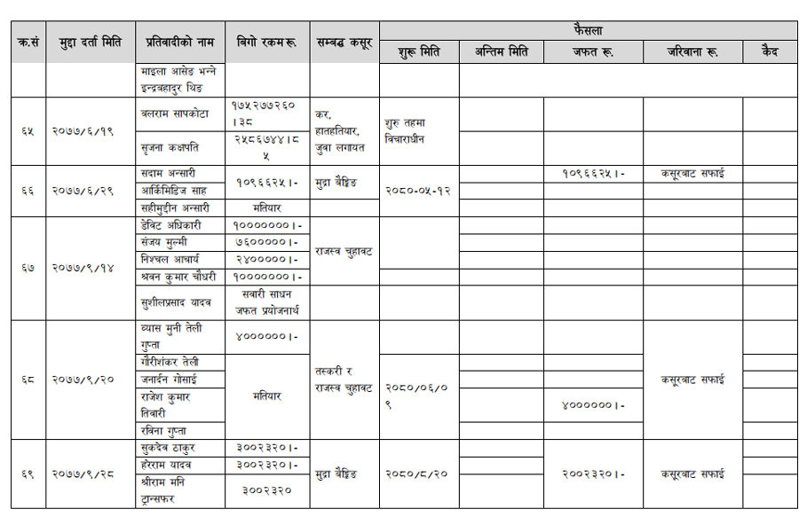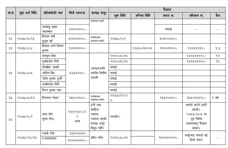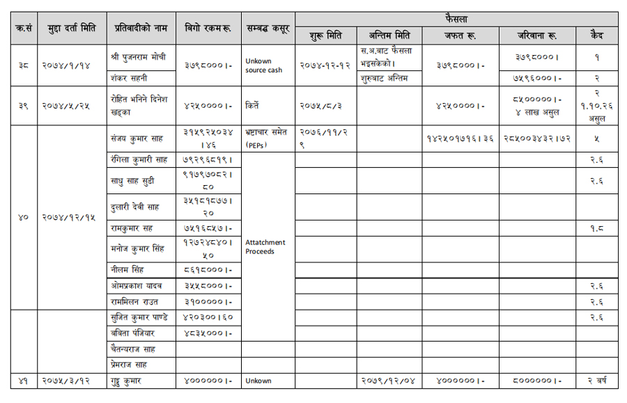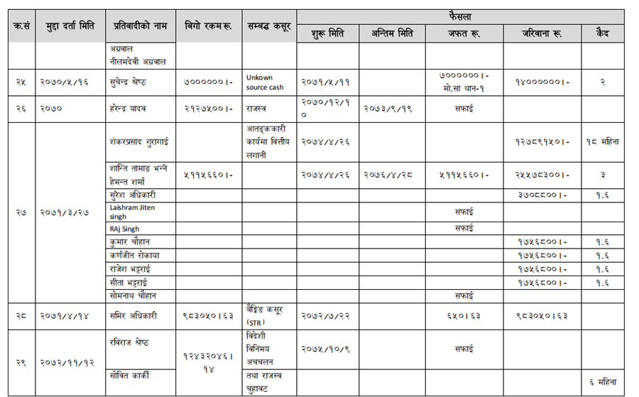 हेर्नुहोस् सम्पत्ति शुद्धीकरण विभाग गठन भएयताका मुद्दामाथिका कारबाहीको विवरण –