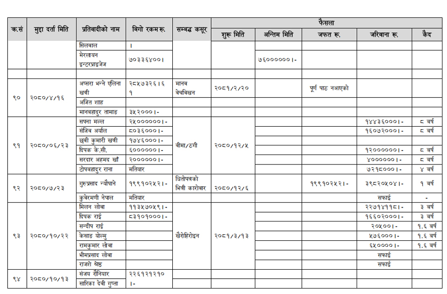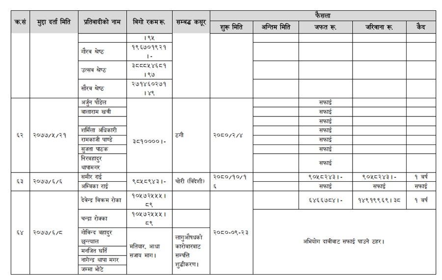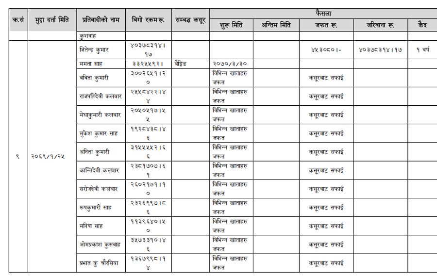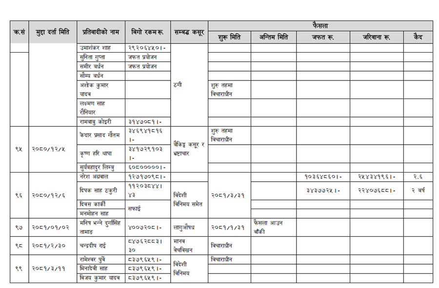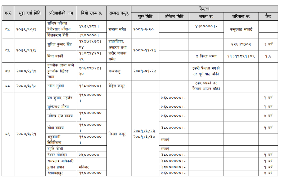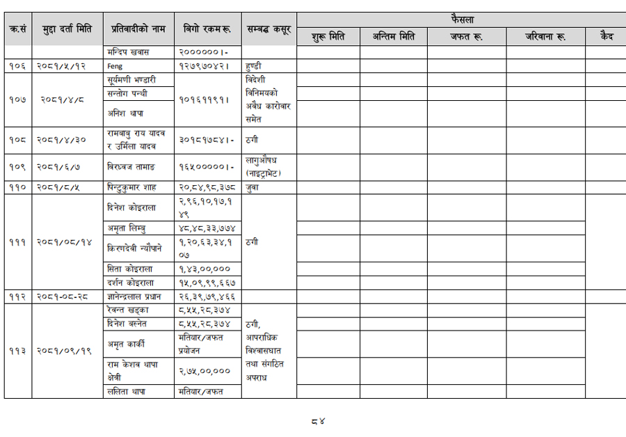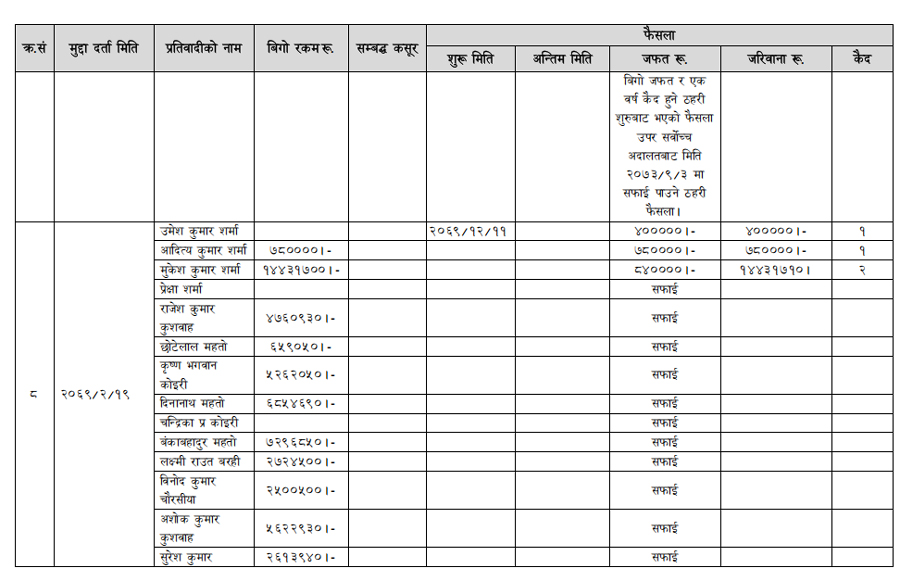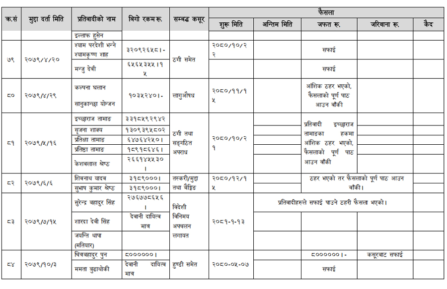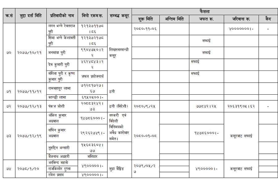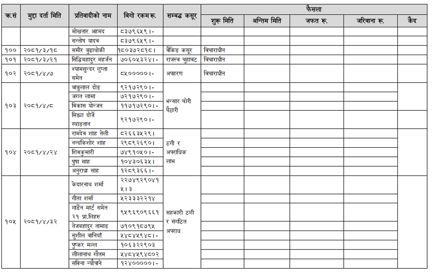 हेर्नुहोस् सम्पत्ति शुद्धीकरण विभाग गठन भएयताका मुद्दामाथिका कारबाहीको विवरण –