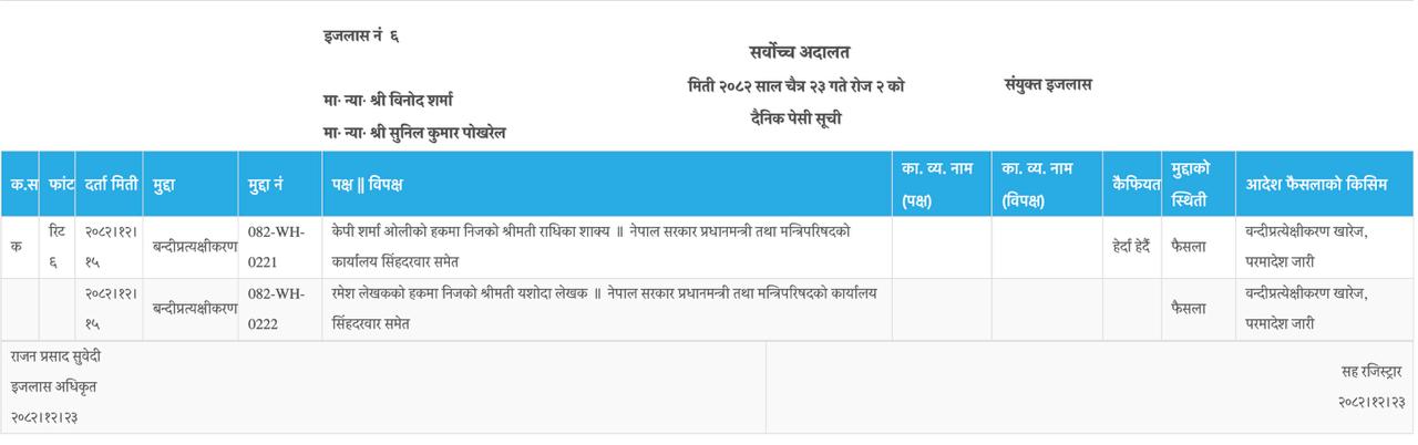 ओली र लेखकको बन्दीप्रत्यक्षीकरण रिट खारेज, म्याद नथप्न परमादेश