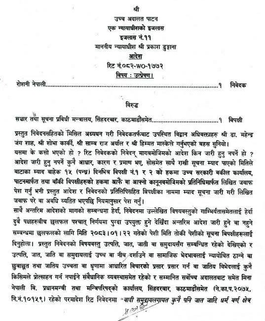 उच्च अदालतको आदेशमा भनिएको छ-
